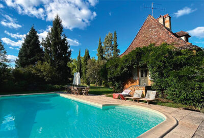 Frans landhuis ‘en pierre’ met verwarmd zwembad, bijgebouw, schuur en hangaar, idyllisch en rustig gelegen op 5,4 hectare Meer informatie